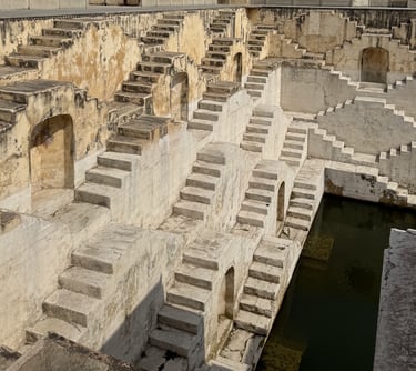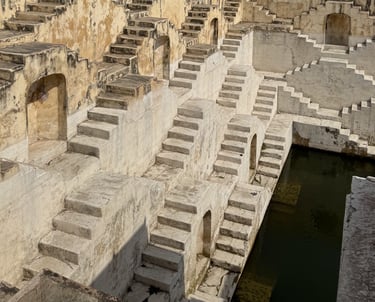 An ancient water reservoir with mesmerizing geometric steps. A hidden gem perfect for quiet reflection and striking photos.