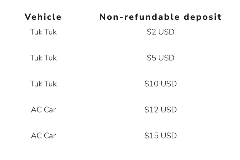 The remaining balance must be paid directly to your driver in cash on the day of your tour.